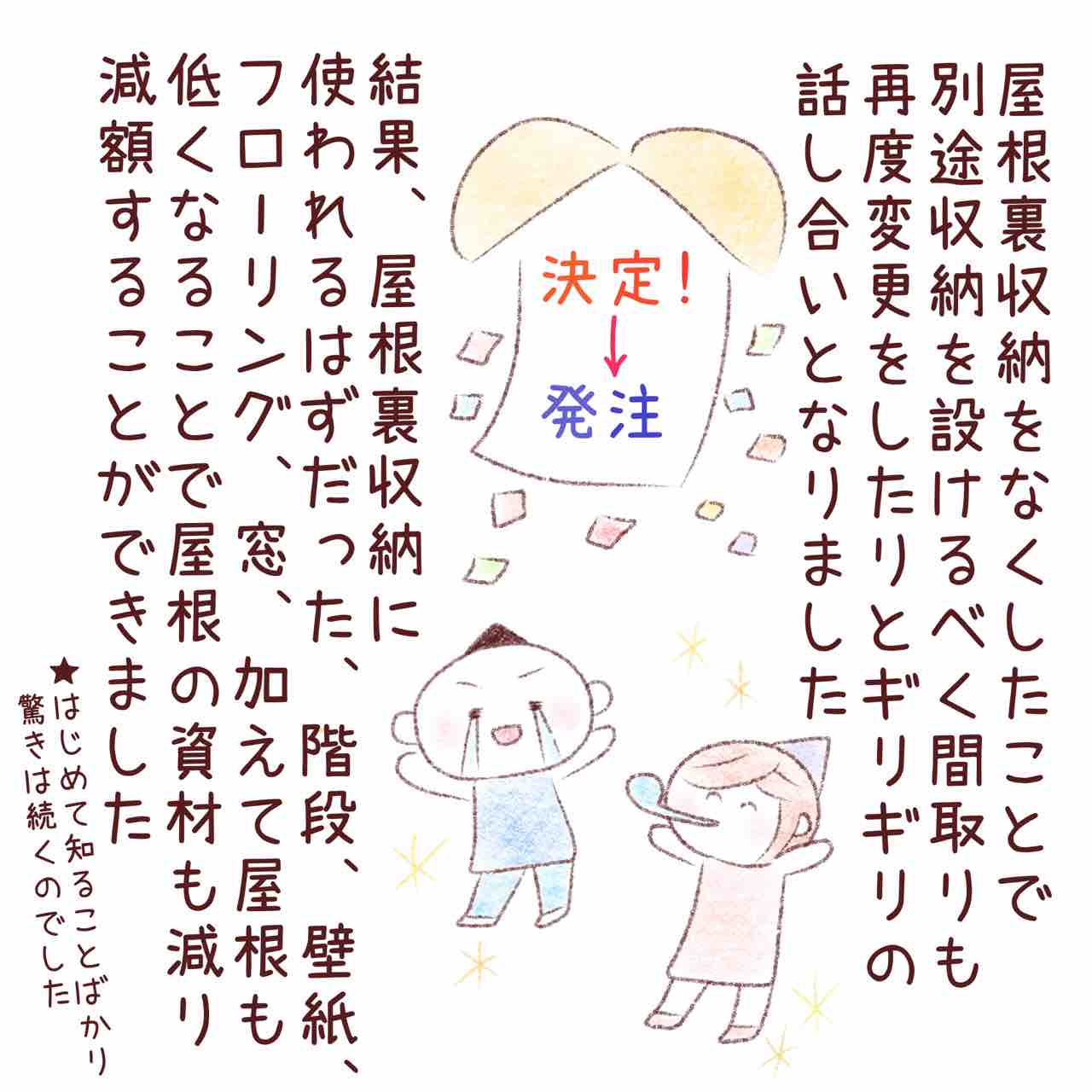 はじめてのおうちづくり12 〜屋根裏収納編〜 2023年01月25日 遊びに来てくださりありがとうございます🍀今日は「はじめてのおうちづくり12 〜屋根裏収納編〜」のお話です🎨第1話目はこちらから→★★★まとめ読み🍀前回のお話🍀 続きはこちらです🍀 「おうちづくり」カテゴリの最新記事 タグ :#イラストエッセイ#注文住宅#マイホーム#マイホーム記録#マイホーム計画#マイホーム絵日記#新築#絵日記#屋根裏収納#間取り < 前の記事次の記事 > コメント コメントフォーム 名前 コメント 記事の評価 リセット リセット 顔 星 情報を記憶 コメントを投稿する